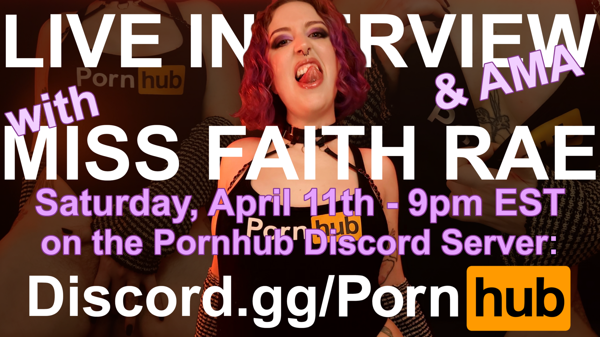 The Pornhub Discord server is hosting an exclusive interview with Yours Truly in just a few days! This is a special opportunity for fans and peers alike to ask me questions, and get to know both Miss Faith Rae and day-to-day Faith Rae a little better.